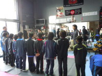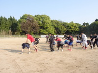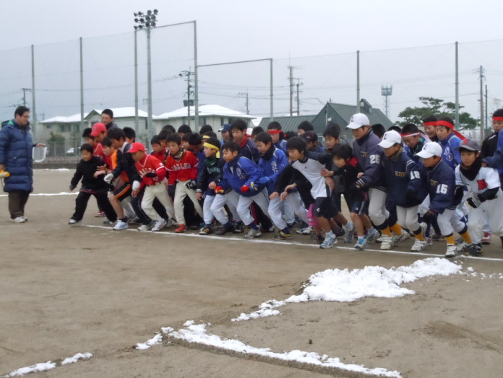 小学5年生ながら、自分達でウォーミングアップ(20分近く)をすませ、円陣を組み、大きな声で掛け声をかけて練習に入ります。