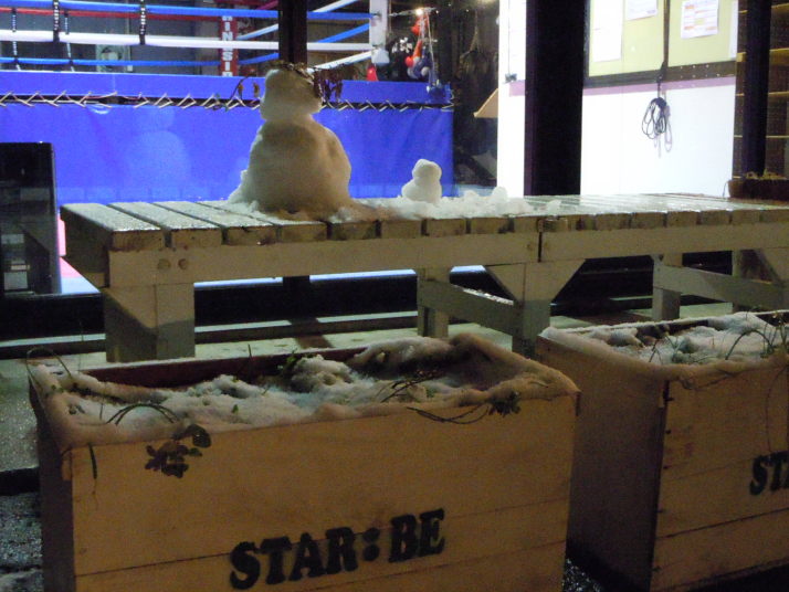 今日も雪が積もる中、練習に来た学生が雪だるまをスクールの前に作って帰りました!